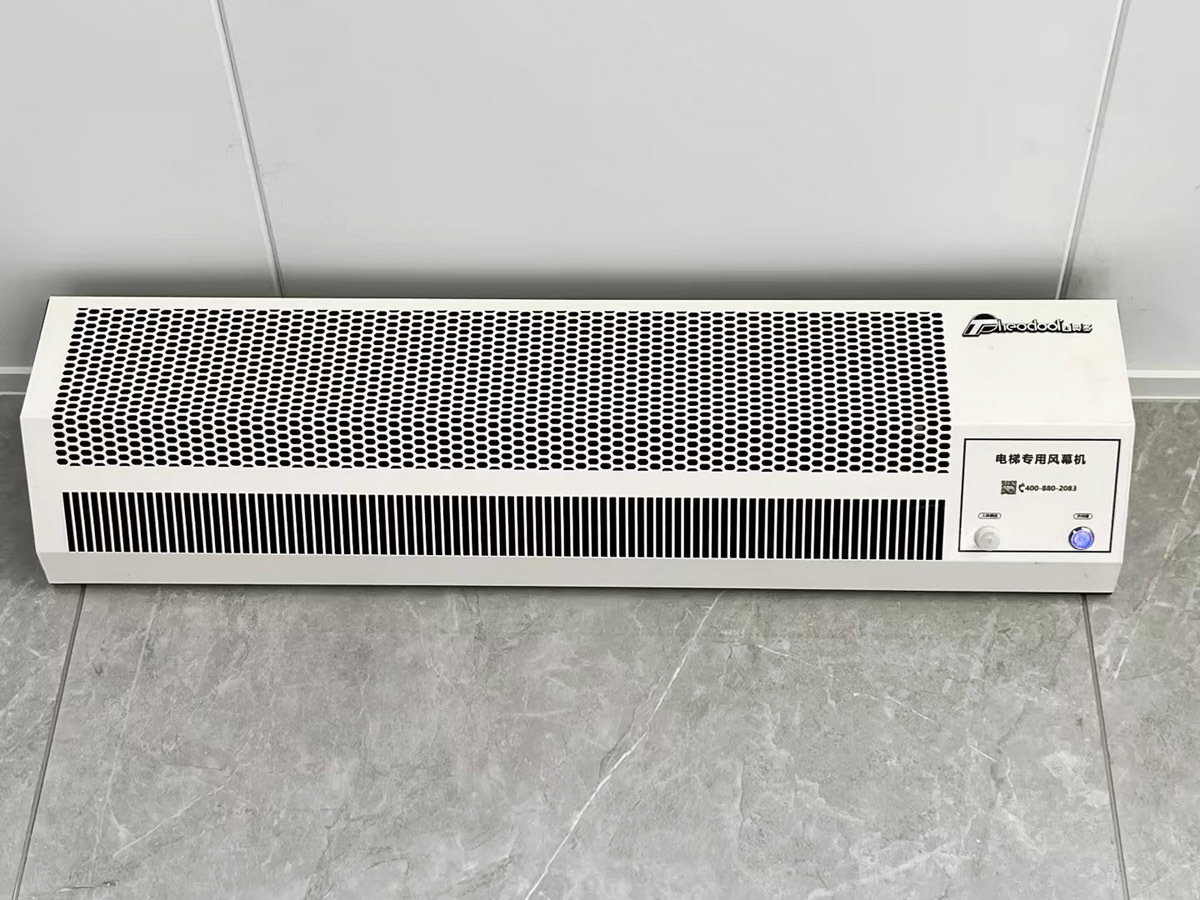 Elevator ventilating air curtain fan for residential and commercial applications.